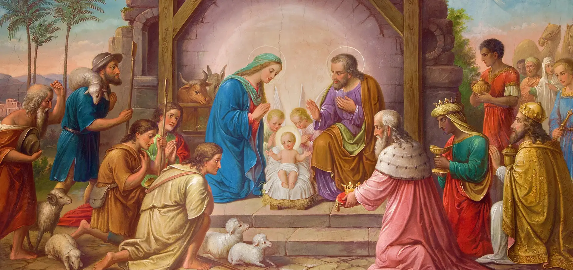Abbildung: Fresko der Geburt Jesu von Josef Kastner dem Älteren in der Erlöserkirche in Wien; copyright sedmak; depositphotos